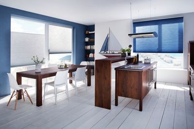 Silent Gliss 'Type D' pleated blind systems include a side-guide and can be specifically designed for roof and pivot windows with an inclined angle up to 60°. Open and close the blind with a handle or optional wand. Please note: Type D models are restricted to rectangular window designs and are opened and closed with a handle.