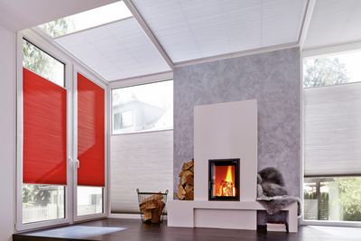 Silent Gliss 'Type B' free-hanging pleated blind systems include a side-guide and are ideal for rectangular or uniquely shaped windows, including tilt-and-turn windows up to an angle of up to 15°. Type B model is available with an elegant handle for opening and closing.